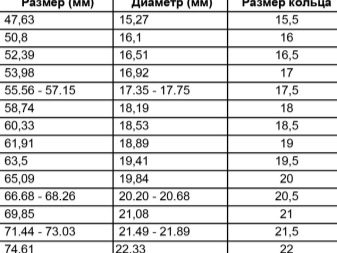 Lors du choix des bagues, la précision dimensionnelle d'un bijou donné est particulièrement importante. Si le produit est plus petit qu'un doigt, il causera constamment une gêne. En conséquence, la circulation sanguine sera perturbée et des marques rugueuses apparaîtront sur les mains. En outre, il peut tout simplement ne pas convenir. Si les tailles sont trop grandes, vous pouvez simplement perdre un cadeau coûteux.