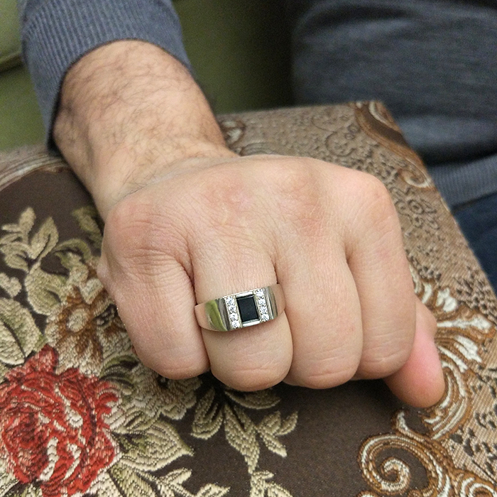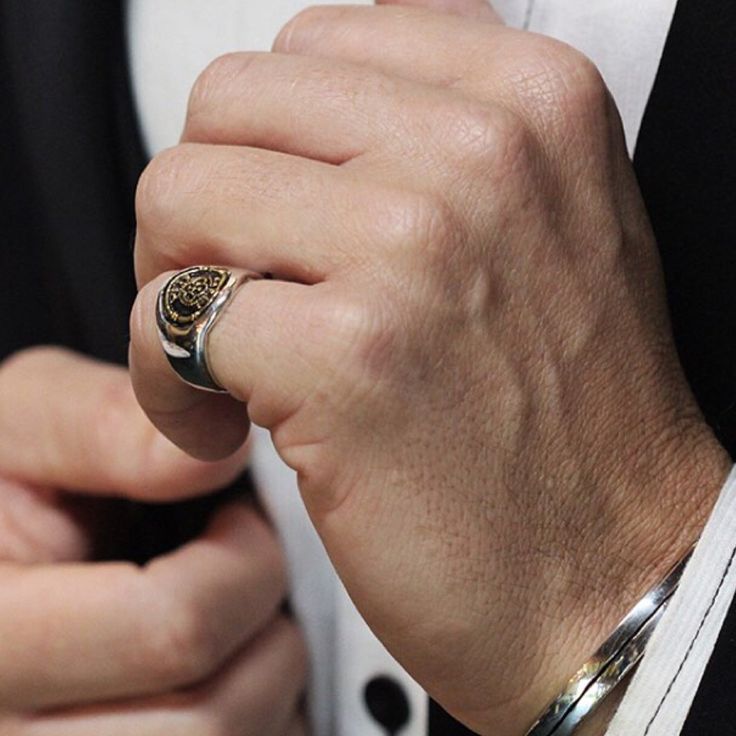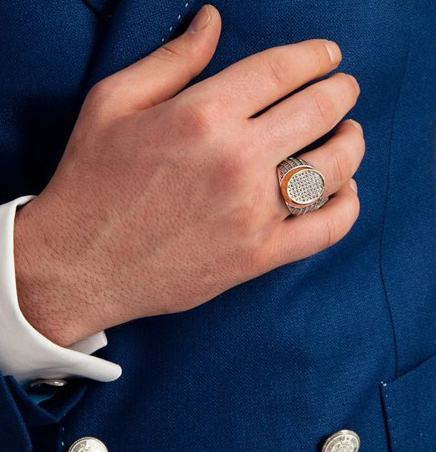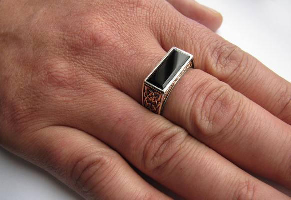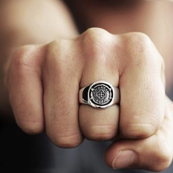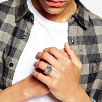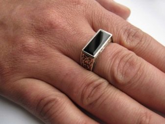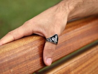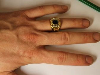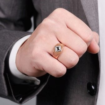 - L'accessoire ne tolère pas la proximité d'autres bagues, à l'exception de l'alliance, et puis - ils doivent être sur des doigts différents. Le nombre maximum de bijoux pour hommes ne dépasse pas deux.