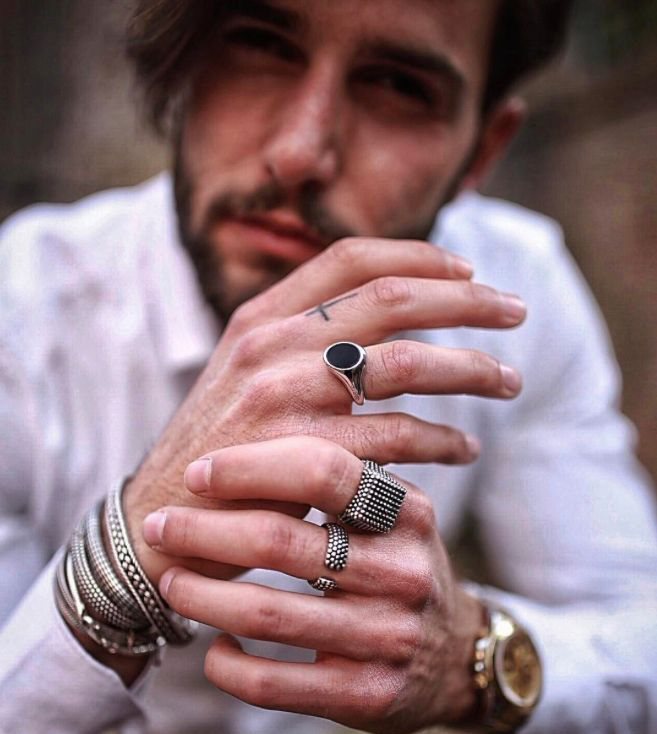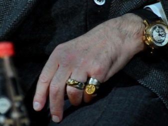 Les psychologues notent qu'un accessoire masculin sur l'index gauche est un indicateur de mégalomanie. Et les bijoux sur les deux mains signifient que leur propriétaire est satisfait de sa position actuelle et ne veut rien changer.