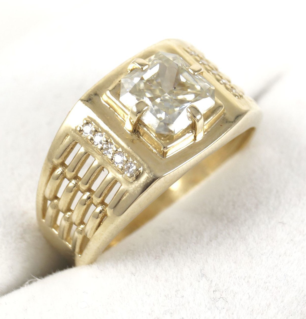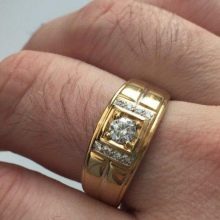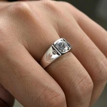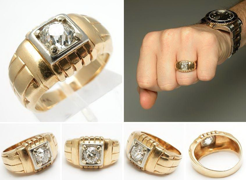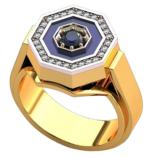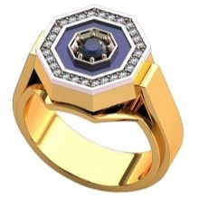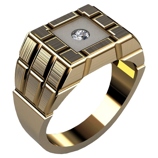 Une bague pour homme avec un diamant diffère de la massivité d'une femme, largeur considérable, conception plus simple et plus concise. La forme de ces produits est généralement caractérisée par des lignes droites, des angles nets et une symétrie prononcée. La gravure sur ces bijoux est soit absente soit située à l'intérieur de la jante.