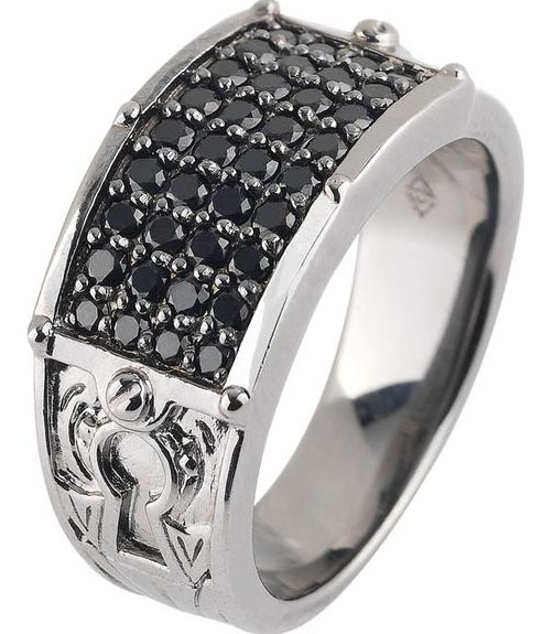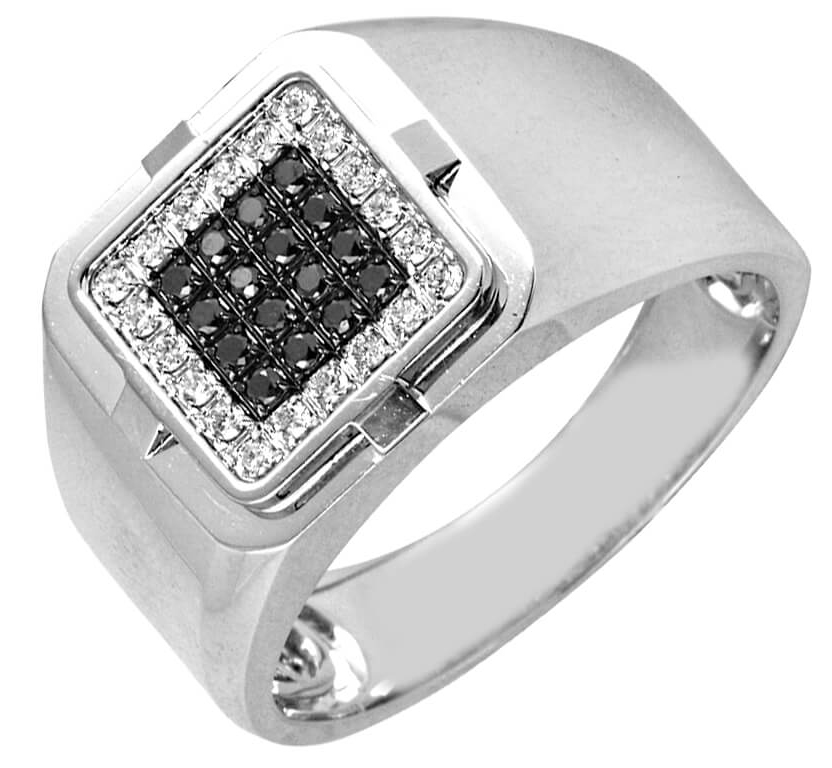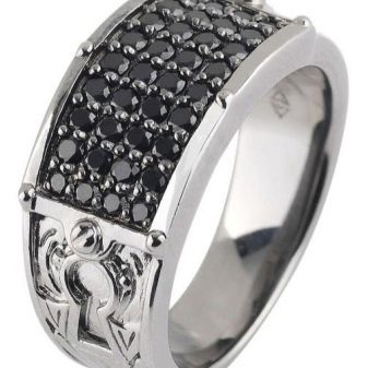 Pour les bijoux incrustés pour hommes, les bijoutiers utilisent généralement des diamants transparents classiques.... Parallèlement à ces bijoux, les bagues luxueuses incrustées de diamants noirs anthracite sont également très populaires parmi les représentants du sexe fort.