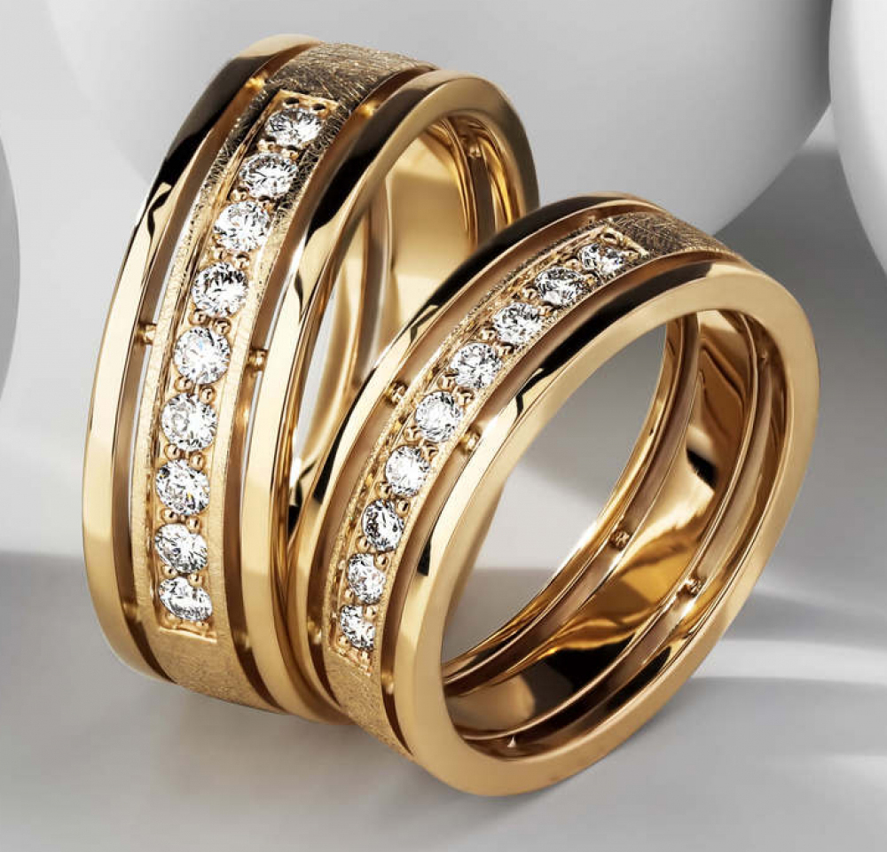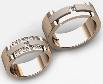Une catégorie distincte est représentée par bagues de mariage pour hommes avec diamants. Ces décorations symboliques sont généralement appariées, visuellement similaires les unes aux autres. Cependant, un produit destiné à un homme (conjoint) diffère presque toujours de celui d'une femme par sa taille plus grande, sa forme massive et anguleuse.