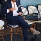 - Un homme portant un costume bleu avec une chemise à carreaux et des mocassins sera extrêmement impressionnant, élégant et moderne.