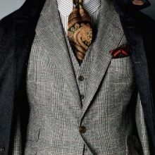 Même en boutique, il est très difficile de deviner instantanément ce type de costume parmi une grande variété de nœuds classiques pour hommes. On dirait qu'un ensemble de pantalons ordinaire est suspendu, et une fois sur le corps d'un homme, il commence à exprimer une combinaison vivante de classiques et d'élégance de la culture britannique. Les costumes britanniques n'ont pas de préférence particulière pour les vestes à simple boutonnage ou à double boutonnage. Mais en même temps, de nombreux conseillers commerciaux conseillent aux hommes d'acheter des modèles exactement anglais, car ils sont parfaits pour les hommes de grande taille et de carrure athlétique.