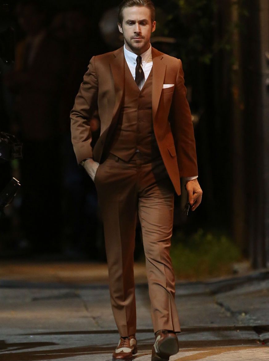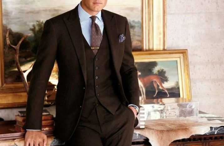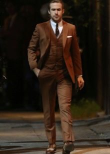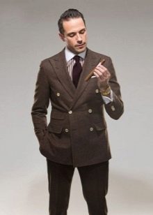 - Il est très difficile de combiner d'autres éléments de vêtement avec des costumes marron, les concepteurs suggèrent donc de ne remplacer la chemise que par un col roulé et de porter des mocassins au lieu de chaussures.