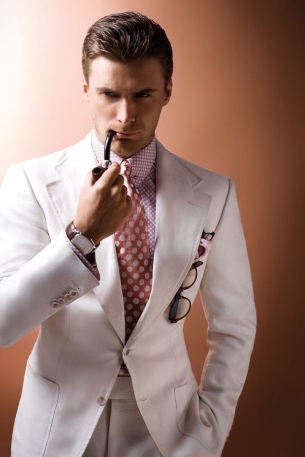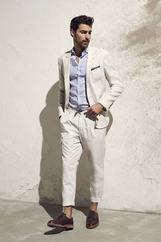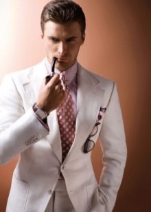 - Blanche. Une vraie couleur estivale qui rend un homme irrésistible. Et si vous connectez des accessoires brillants au costume, l'image d'un représentant du sexe fort vaincra simplement les autres sur place.