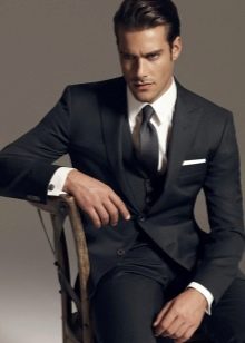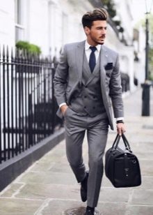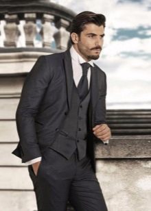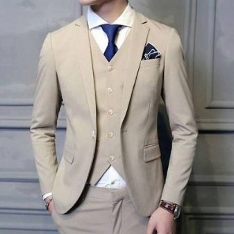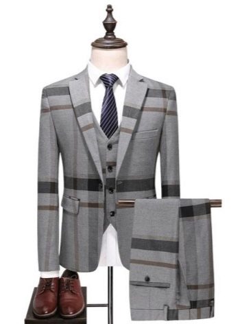 Le type de costume présenté suppose une complétude standard, à savoir un pantalon, une veste et un gilet. Selon l'idée de conception du siècle dernier, tous les éléments d'un costume trois pièces devaient correspondre le même schéma de couleurs, avec un motif identique et fait du même matériau... Mais les stylistes modernes ont revisité cette approche de la confection de l'arc classique pour hommes, et maintenant diverses expériences sont autorisées sur la conception des vêtements présentés. Bien sûr, de nos jours, les trois sont choisis assez rarement par les hommes, bien qu'ils devraient être présents dans la garde-robe de tous les représentants du sexe fort.