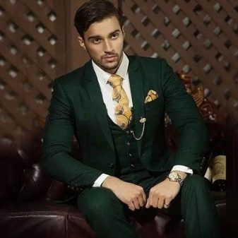 - Vert... Un favori des dernières saisons. Mais ce n'est pas seulement une couleur verte calme, mais aussi des tons émeraude, turquoise et vert clair. Pour un usage quotidien, une teinte kaki convient. Mais pour les occasions spéciales, il est préférable de porter un costume d'un riche ton vert.