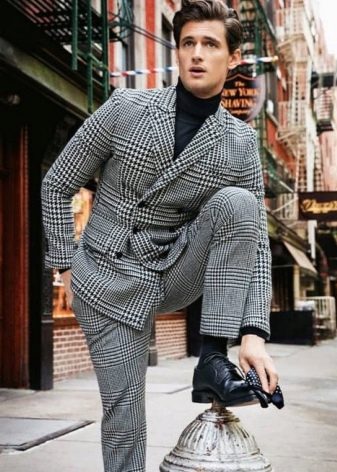 En ce qui concerne les imprimés, sur les podiums à la mode de notre époque, il y a des costumes non seulement avec un motif à carreaux, mais aussi avec une bande contrastante. Seuls les hommes en surpoids ne doivent pas choisir des costumes avec des imprimés, sinon l'excès de poids sera aux yeux du public.
