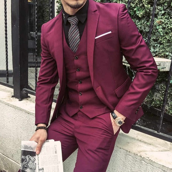 - Bourgogne... La couleur elle-même est magnifique, mais tous les hommes ne conviennent pas. En choisissant une telle couleur, vous devez regarder attentivement dans le miroir, voir la dignité de votre corps, voir comment le costume est combiné avec les données externes d'un homme.