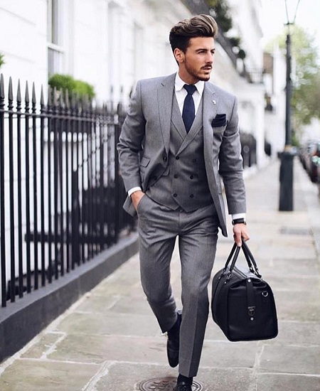 - Gris. Selon les psychologues, cette couleur est choisie par des hommes de principe qui se distinguent par une entreprise maximale.L'essentiel est de ne pas oublier que des accessoires lumineux, par exemple une cravate rouge ou une écharpe, doivent être connectés à l'image grise afin de diluer la monotonie.