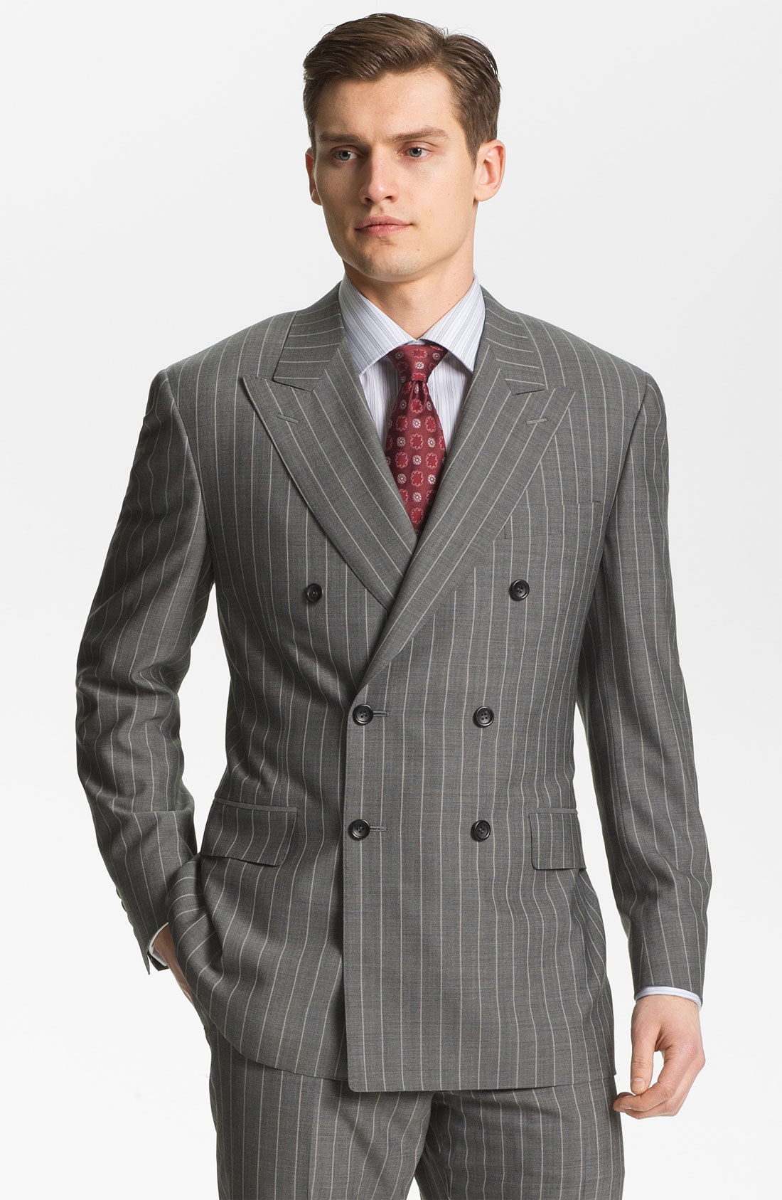 Les gens disent que les modèles de vestes à double boutonnage sont contre-indiqués pour les petits représentants du sexe fort, mais ce n'est pas le cas. Les traditions italiennes ont brisé ce stéréotype, les designers ont réduit la longueur de la veste, c'est pourquoi les jambes ont acquis une longueur visuelle.