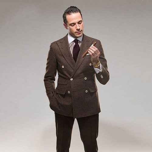Une veste à double boutonnage est une version plus stricte d'un arc pour hommes. Le plus souvent, il est acheté pour une célébration ou pour assister à des réunions d'affaires sérieuses, où un code vestimentaire officiel est requis. Une caractéristique distinctive de l'élément à double boutonnage du costume classique est la disposition de deux rangées verticales de boutons sur le côté droit du sol. Et lors de la fixation du sol avec des boucles, il entre sur le sol avec des boutons avec une circonférence de corps impressionnante.