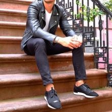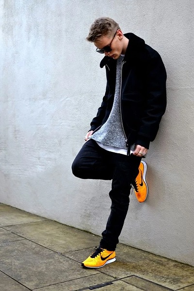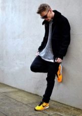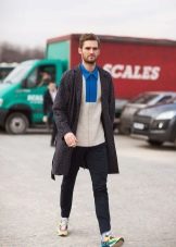 Des baskets épaisses aideront à créer un look plus brutal. Puisque nous parlons de chaussures imperméables, par temps frais c'est bien un manteau informel, un trench-coat ou à peu près n'importe quelle veste fera l'affaire.