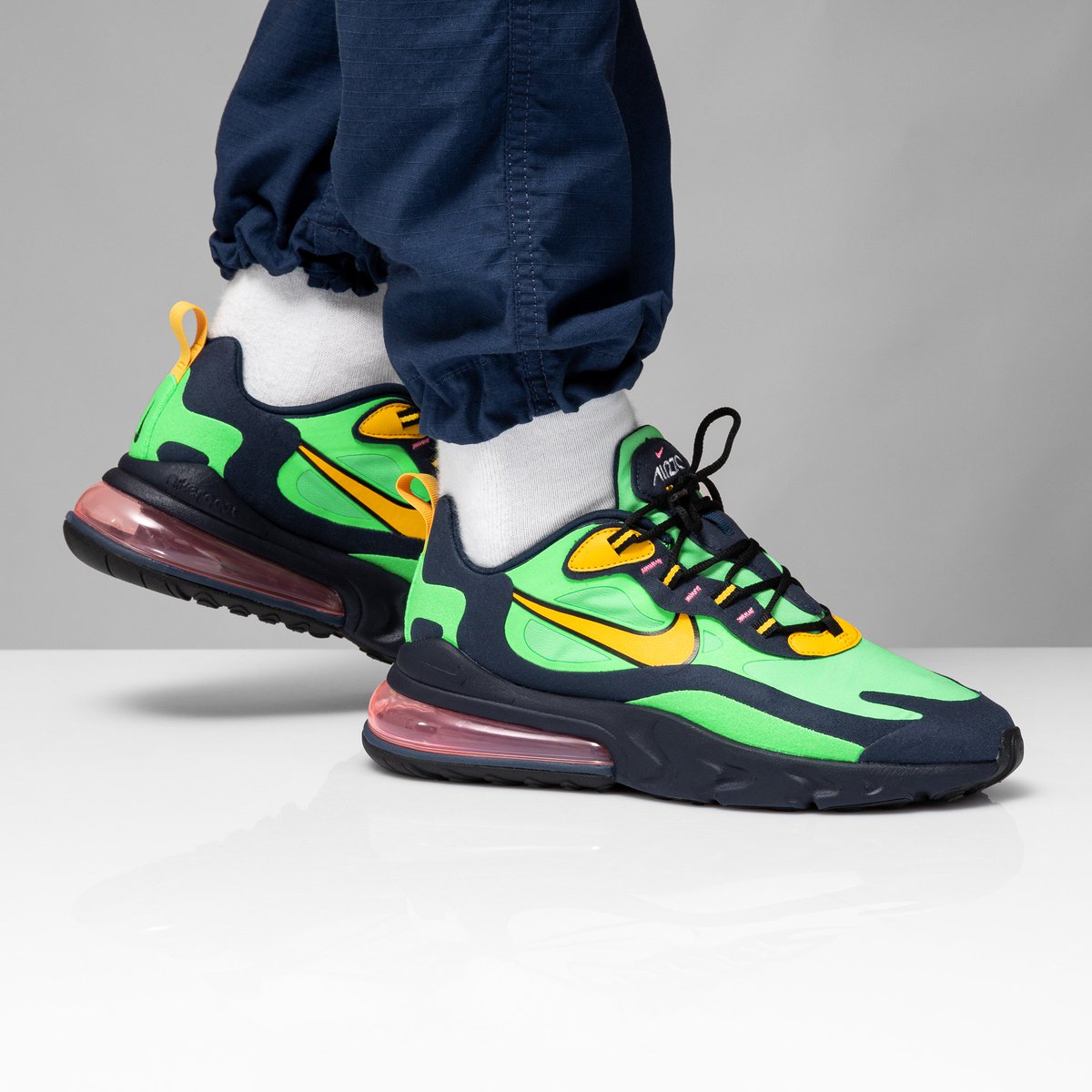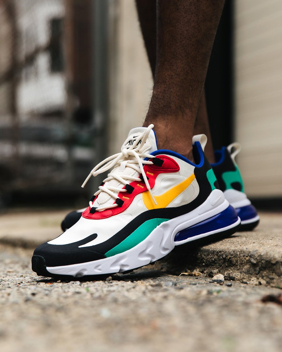 - Air Max 270 Réagir. Une version "fraîche" d'un produit classique, agrémentée d'éléments irisés. La semelle est équipée d'un insert amortisseur.
