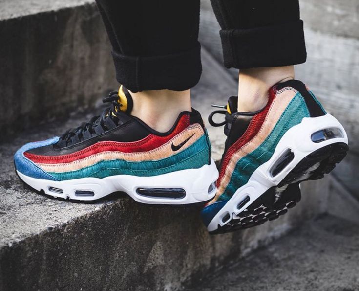 Les modèles multicolores sont populaires, par exemple, Air Max 95combinant blanc, bleu, 2 tons de gris et noir.