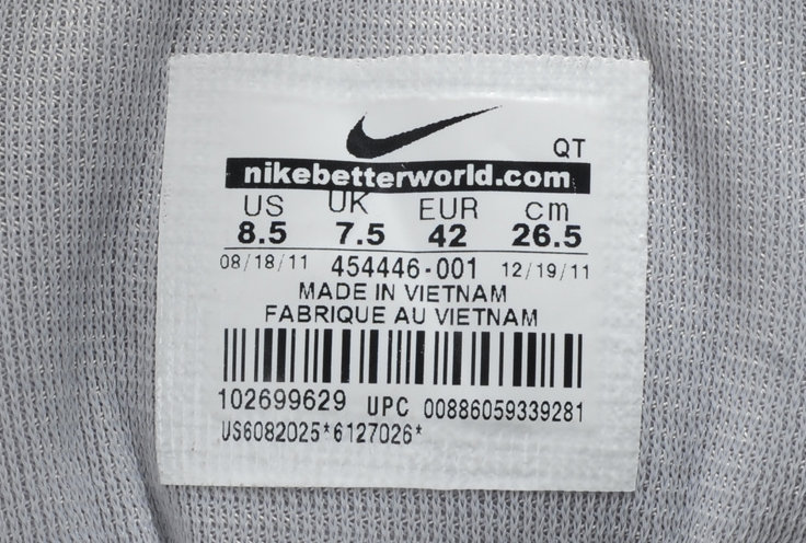 - Le logo sera placé à la fois à l'intérieur et à l'extérieur de la languette de la sneaker. Celui interne doit contenir toutes les informations sur un modèle, une taille et un pays d'origine spécifiques, ainsi qu'un code-barres. L'extérieur sera représenté uniquement par le logo et le nom de la paire.