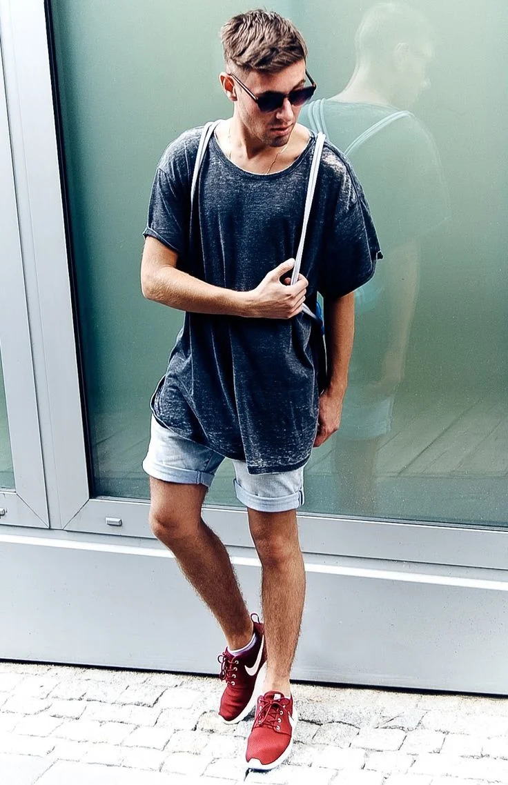 - shorts en jean et t-shirts unis - une option estivale courante pour la plupart des hommes et des jeunes hommes ;