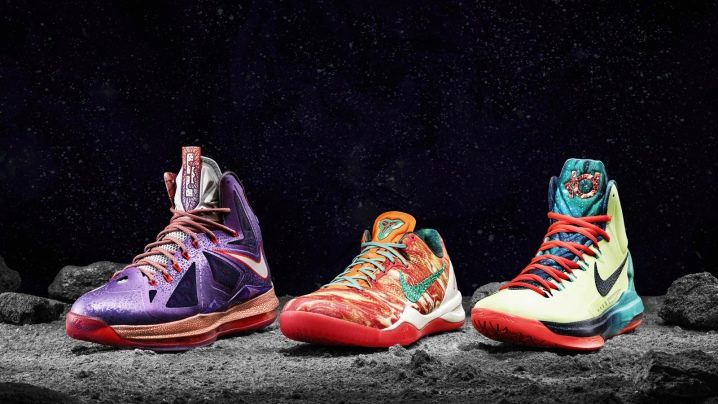 Les chaussures de basket-ball Nike à la mode présentent un design attrayant et non trivial. De nombreux modèles combinent plusieurs couleurs qui semblent incompatibles sur une même surface. Il existe à la fois des spécimens standard bas et haut.