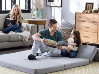 - Le prochain type que l'on peut trouver est un matelas pliant. Une option pratique et pratique qui peut être facilement utilisée pour le repos et le sommeil. La principale caractéristique est que ces modèles ont des sections séparées les unes des autres. Ils sont reliés entre eux par un tissu dense, de ce fait, le matelas peut être utilisé comme canapé, puis étendu en un lit complet. La version compacte est particulièrement adaptée aux pièces où il n'y a pas de couchage pour les invités. Leur épaisseur habituelle est de 25 cm et plus.