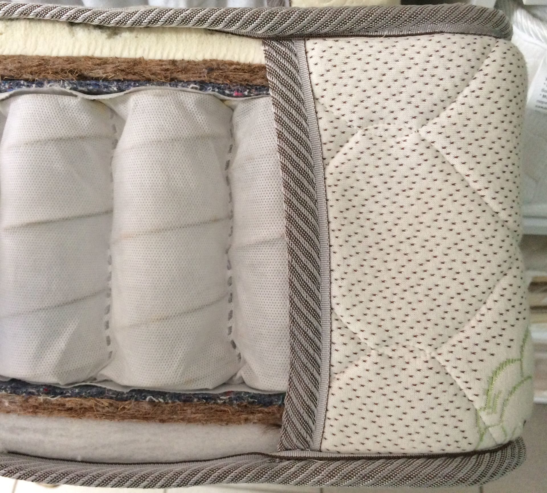 Type de remplissage. Le rembourrage peut être en mousse de polyuréthane, en fibre de coco et en latex. La mousse de polyuréthane est hypoallergénique et douce. La charge de noix de coco est fabriquée à partir de fibre de coco. Le latex est créé à partir de la sève d'un hévéa.