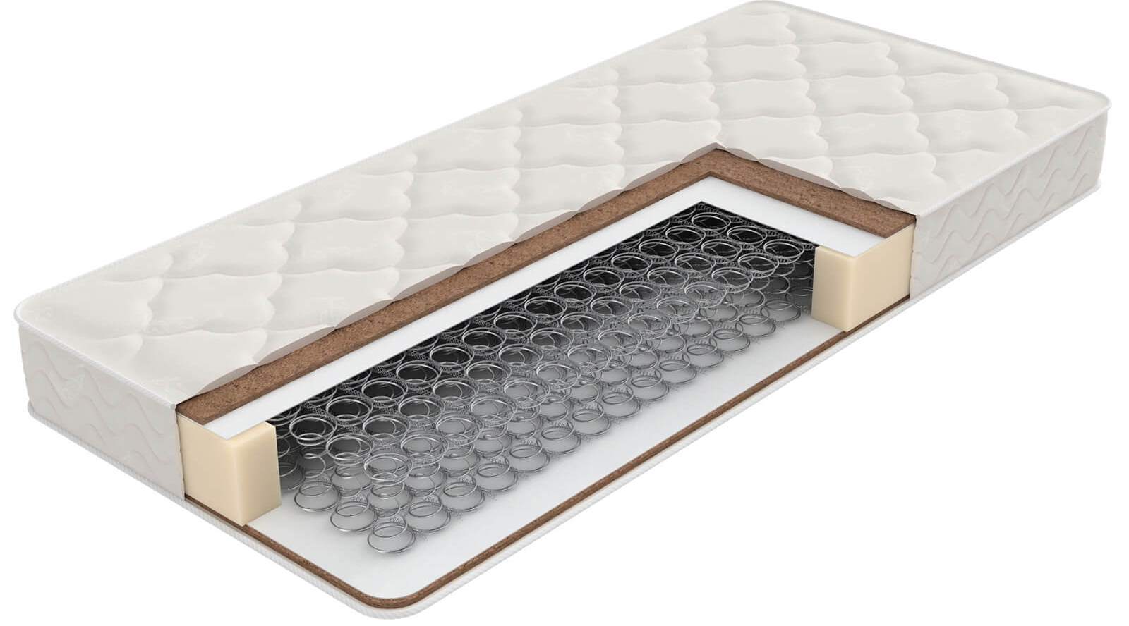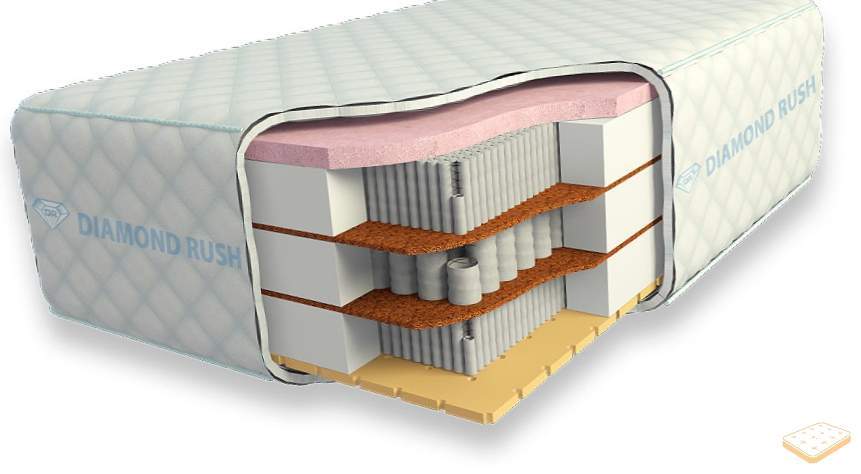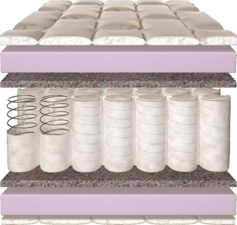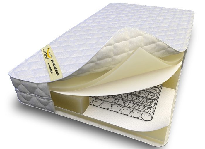 Pour les matelas avec un bloc à ressorts dépendant, la composition peut différer légèrement. Ici, les fabricants économisent souvent sur les composants de base, offrant aux clients un cadre métallique rigide avec des intercalaires insignifiants d'inserts à l'avant et à l'arrière.