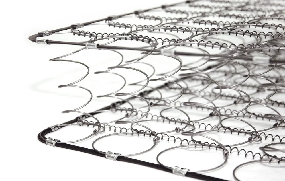 Ce type de bloc ressort est mieux connu sous le nom de bonnet. Il s'agit d'une structure de ressorts en acier d'une épaisseur de 1,2 à 2,2 mm reliés entre eux par des fils, chacun ayant 4 tours. Ils sont installés dans une rangée, reliés par des éléments en spirale. La forme du ressort est à double cône, diamètre 60-100 mm. En moyenne, il y a de 100 à 150 de ces éléments par 1 m2.