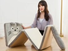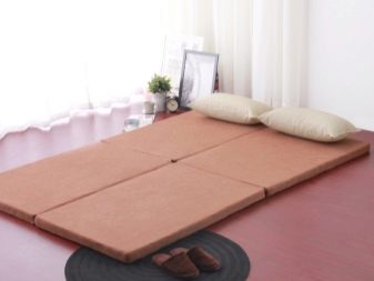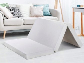 La caractéristique des matelas pliants ressort clairement de leur nom. Ils sont constitués de plusieurs segments reliés par des bandes de tissu résistant. Le plus grand nombre sur le marché est une version à trois sections du transformateur - cette décision est considérée comme classique. Vous pouvez également trouver des matelas à deux segments, pliables en deux, et des modèles moins courants, dont le nombre de sections peut aller jusqu'à six.