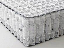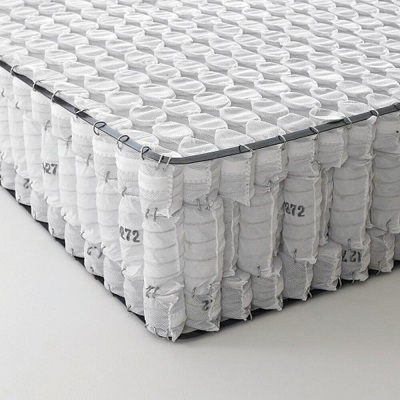 - Indépendant du ressort : placé sur une base commune avec l'extrémité inférieure, chaque ressort ne coupe aucun ressort adjacent. Au contraire, il est emballé dans une housse en tissu (généralement synthétique), comme les autres qui l'entourent. Le couvercle empêche le ressort de frotter contre les voisins. La hauteur du matelas est déterminée par la longueur du ressort détendu, son épaisseur et sa rigidité.