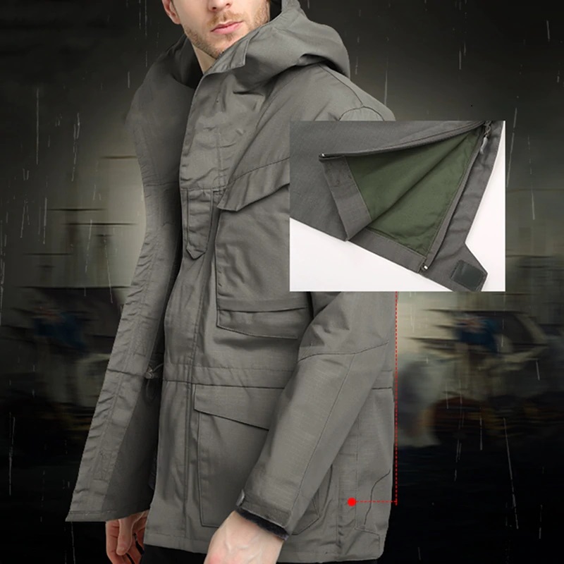 Comme la catégorie sport, les vestes militaires ont des objectifs différents, c'est pourquoi des options de membrane et des tissus imprégnés sont utilisés. Pour la couche extérieure, des tissus tels que le nylon, le duspo, le cordura imprégné de polyuréthane, le duplex sont utilisés. Les vestes duplex conviennent aux climats plus stables, car elles perdent rapidement leurs propriétés imperméables avec des lavages fréquents.