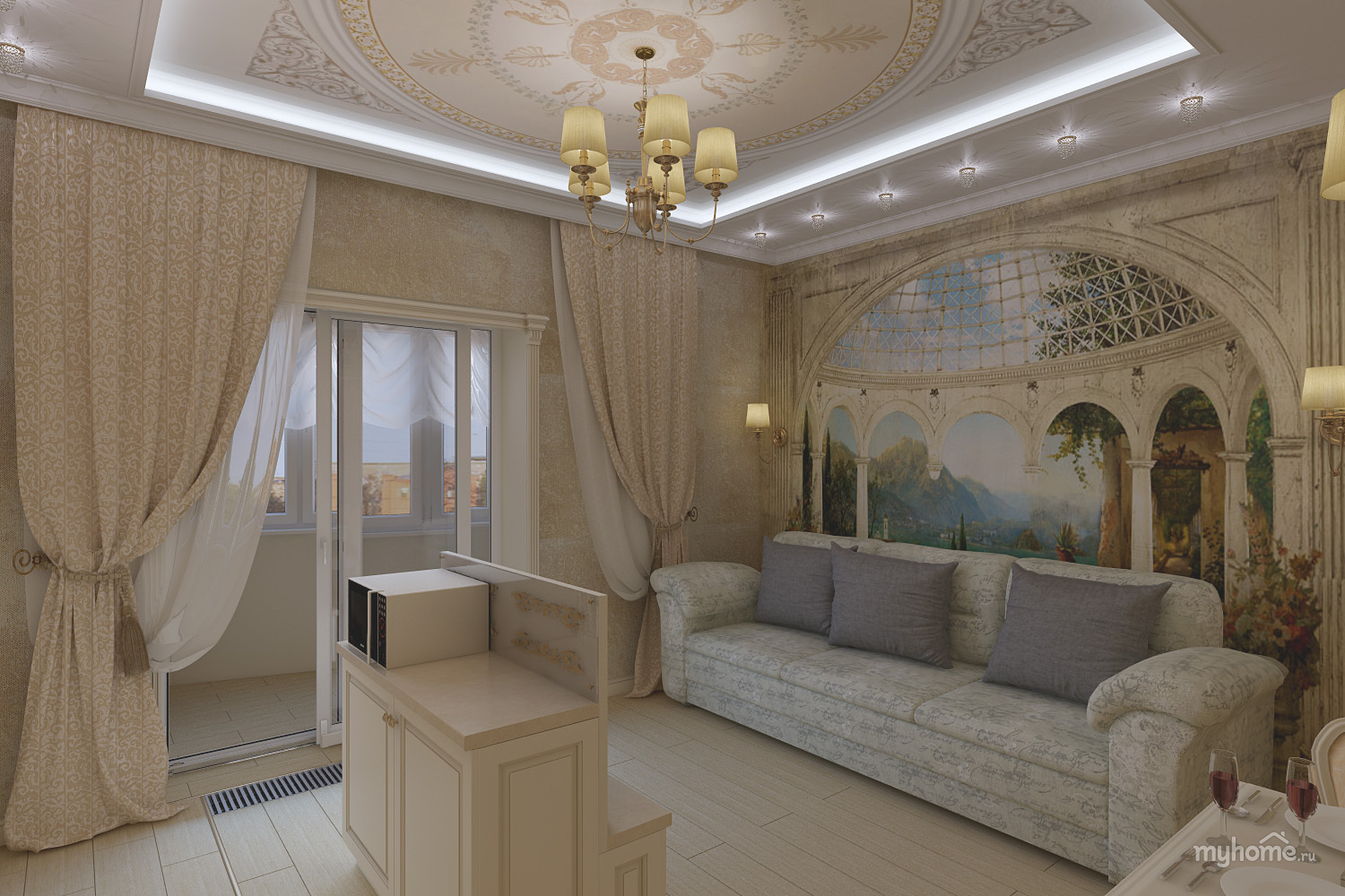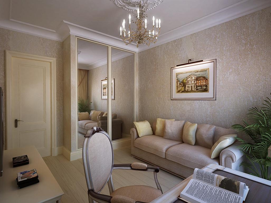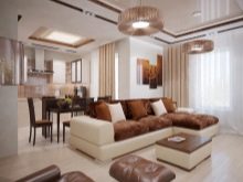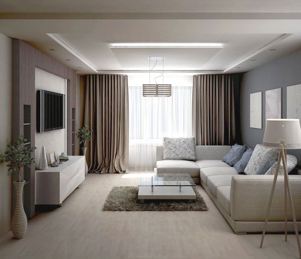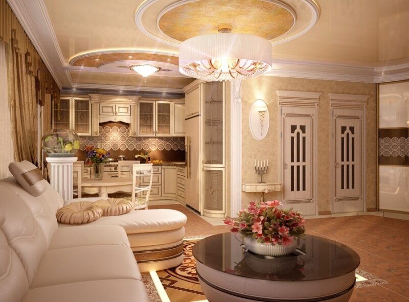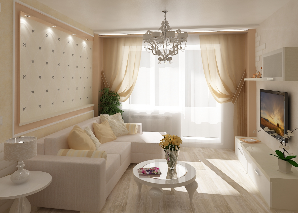 Lors de la création de l'intérieur d'un appartement de deux pièces, une attention particulière doit être portée au salon, qui est l'élément central de tout l'appartement. UNE si la pièce n'est pas assez grande, il est préférable de décorer le plafond avec du blanc ou une autre couleur claire, ce qui créera une illusion de hauteur.