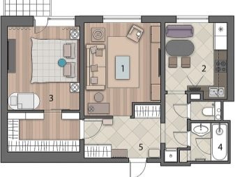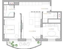 Mais dans une telle disposition d'un appartement de deux pièces, vous pouvez trouver plusieurs points positifs.