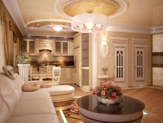 Si la pièce a des plafonds bas, vous pouvez augmenter la hauteur en utilisant un éclairage spécial. L'intérieur de style classique se distingue par la présence de meubles lourds, et certains éléments peuvent être intégrés dans une niche tout à fait.