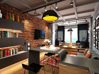 La chambre de style loft se distingue par son intérieur urbain, un grand espace libre et de nombreux éléments uniques. Ici, vous pouvez décorer des murs comme de la brique, utiliser diverses lampes intéressantes et des meubles modulaires, ce qui sera une excellente solution pour un appartement de deux pièces de 60 mètres carrés. Pour pour offrir un maximum de confort et de lumière naturelle, un plâtre lisse peut être utilisé.