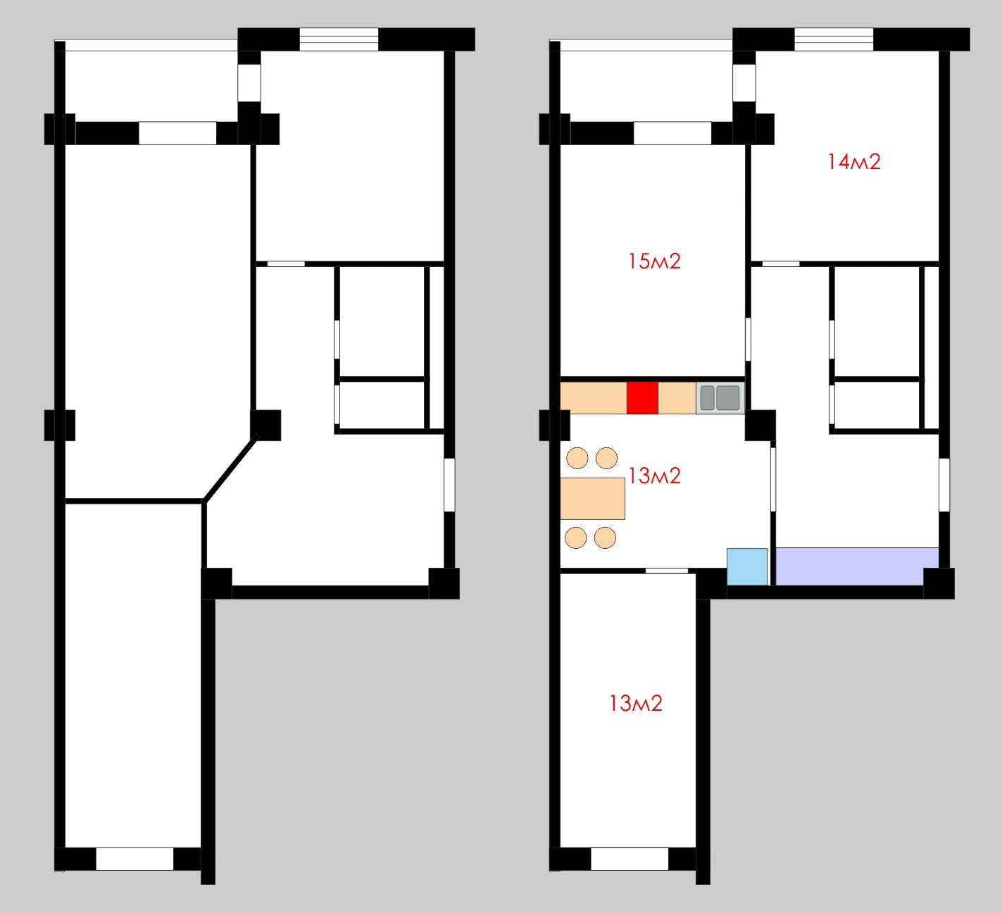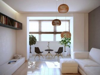 Habituellement, les pièces d'un tel appartement sont suffisamment larges, vous pouvez donc organiser plusieurs zones en même temps. Si l'appartement dispose d'un balcon, il peut également être utilisé pour augmenter l'espace utilisable. Par exemple, combiner une cuisine et un balcon serait la solution parfaite pour agrandir l'espace de cuisine et de repas. Si nécessaire, vous pouvez également utiliser des appuis de fenêtre, qui seront un excellent endroit pour installer de petits appareils électroménagers.