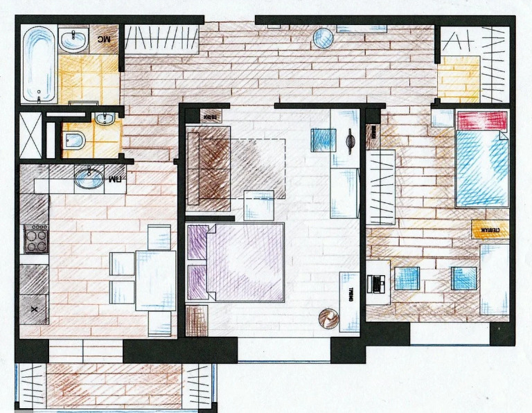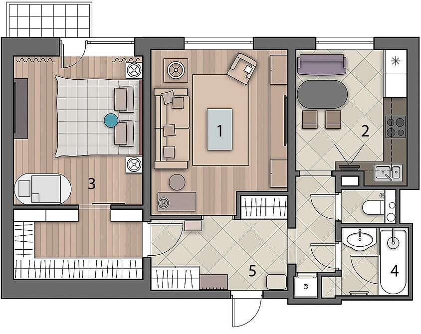 Dans le processus de création d'un intérieur attrayant et élégant avec deux pièces, le développement de projet prend une place importante, surtout si un appartement est en cours de rénovation dans un immeuble neuf. Cependant, cela ne veut pas dire qu'il est possible de se passer d'un projet dans une maison à panneaux, il faudra aussi le développer pour la Stalinka. Quel que soit le type d'appartement à rénover, vous devez d'abord développer un projet de conception clair. Cette documentation comprend les points suivants :