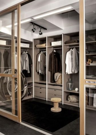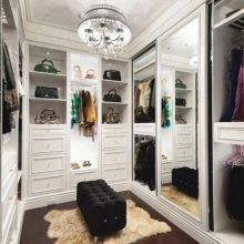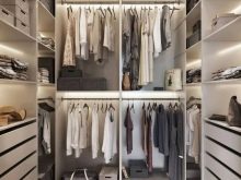 Un petit dressing dans les appartements modernes est généralement combiné avec une chambre ou une salle de bain. Dans les appartements de type ancien, vous pouvez prévoir une penderie dans l'ancien placard, après y avoir fait une rénovation complète, ou sur le balcon. De plus, un petit dressing peut être placé sous les escaliers de la maison.