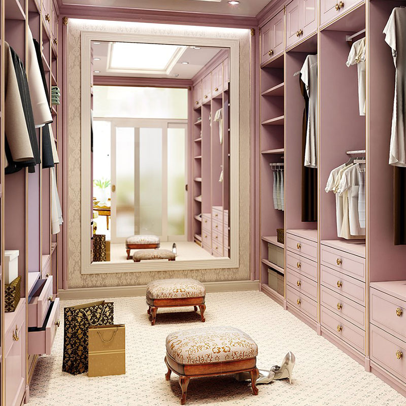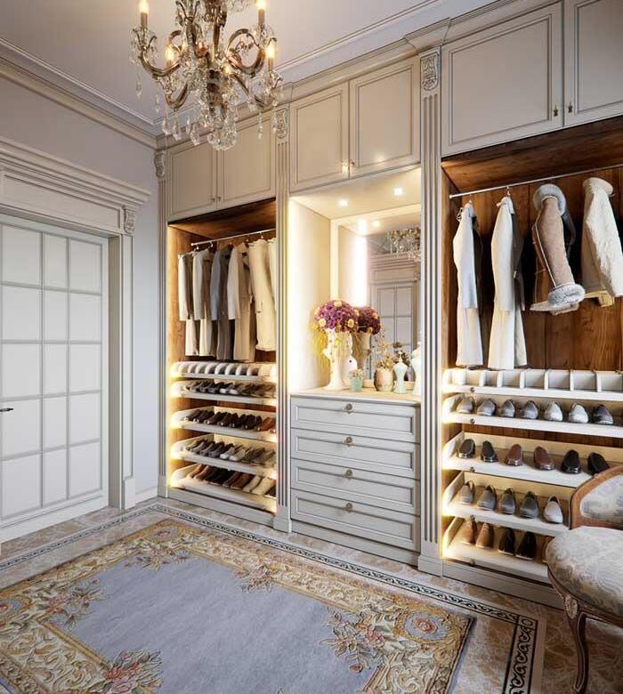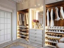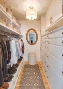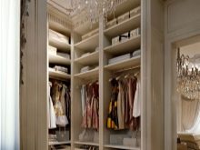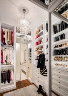 - Classique. Il est très difficile de recréer un style classique à part entière dans un petit dressing. Cependant, afin de poursuivre le style général de l'appartement dans cette direction, vous pouvez privilégier les couleurs claires, ainsi que les meubles en bois naturel avec des détails sculptés ou des abrasions. De plus, dans ce style, des meubles avec des éléments en verre peuvent être présents.