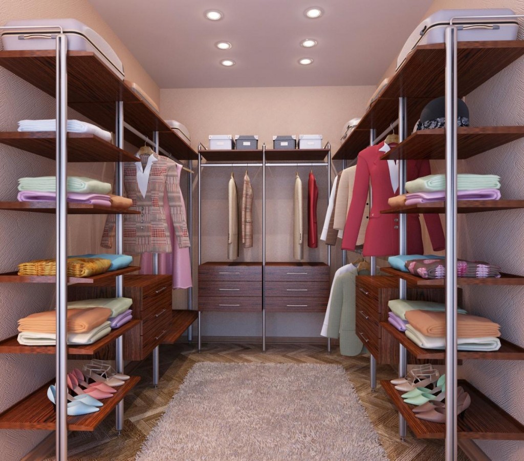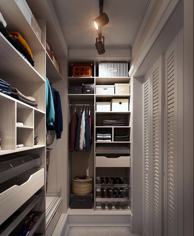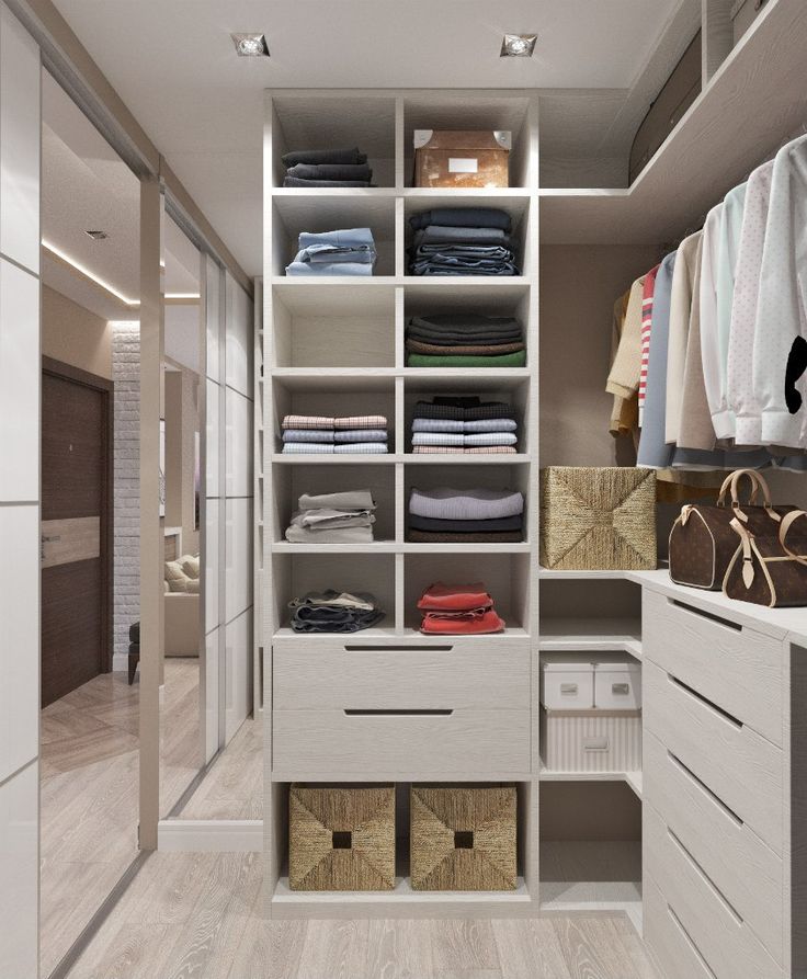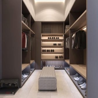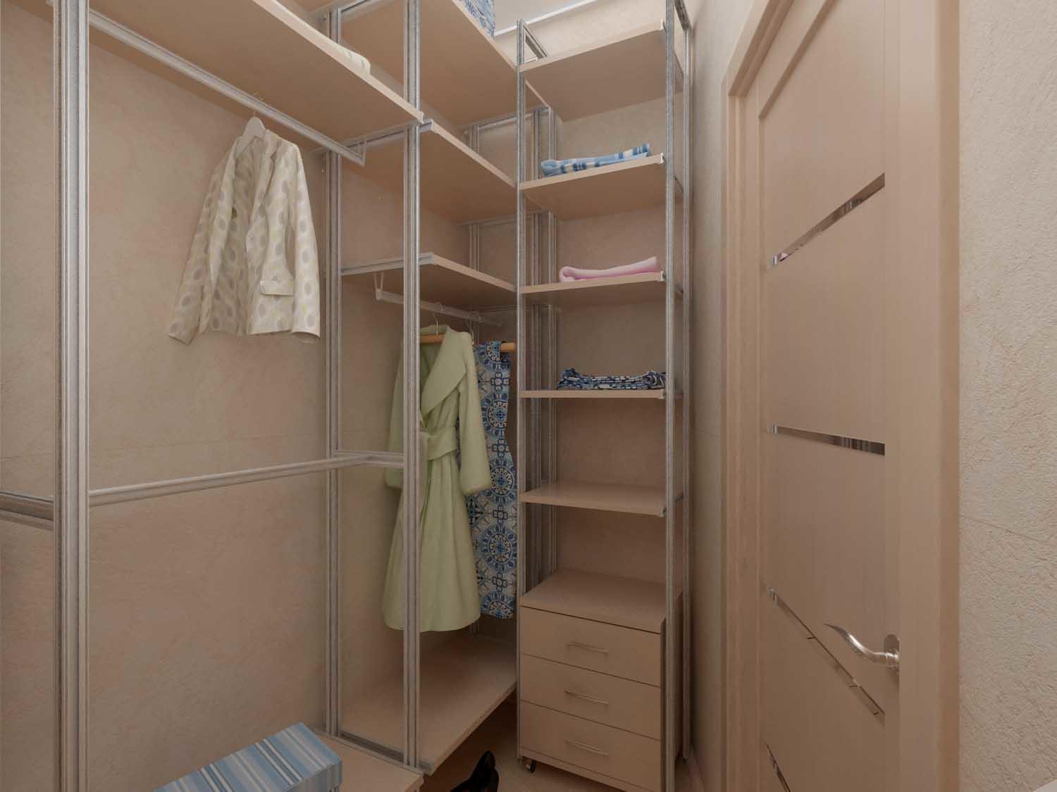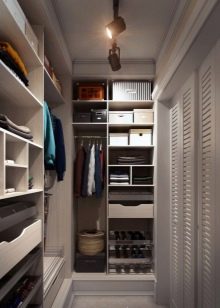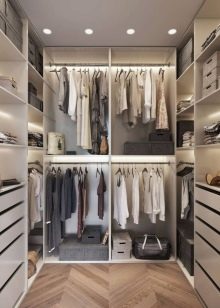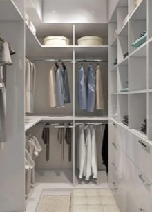Aménagement d'un petit dressing d'une superficie de 4 m². m. dépend le plus souvent de certaines caractéristiques géométriques de la pièce, des préférences personnelles du propriétaire et de l'emplacement de cette pièce elle-même.