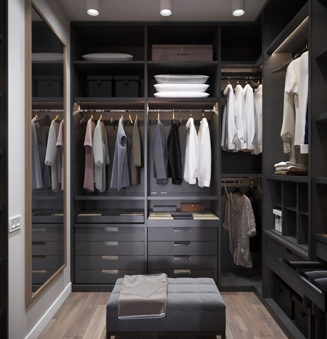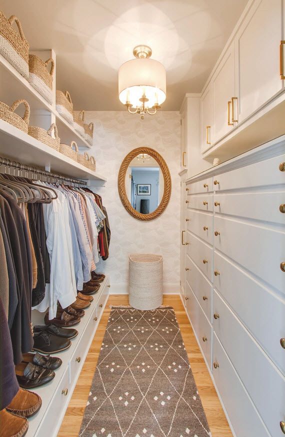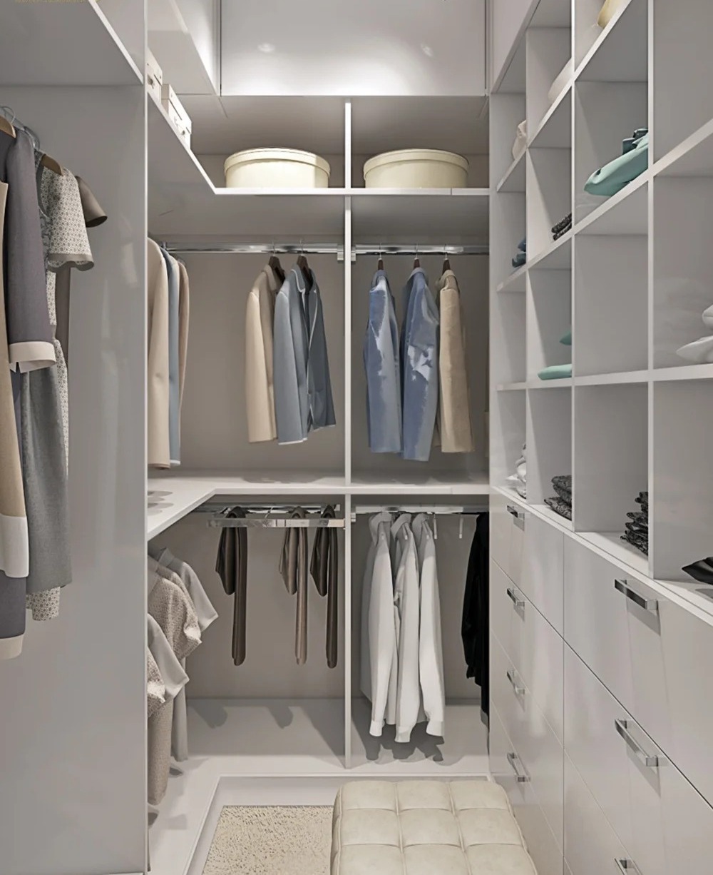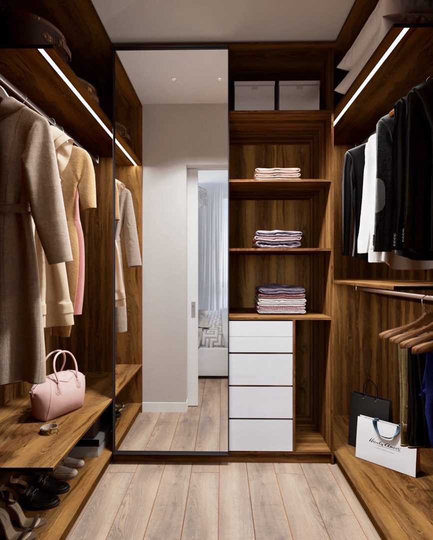 Aménagement d'un petit dressing d'une superficie de 4 m². m. dépend le plus souvent de certaines caractéristiques géométriques de la pièce, des préférences personnelles du propriétaire et de l'emplacement de cette pièce elle-même.