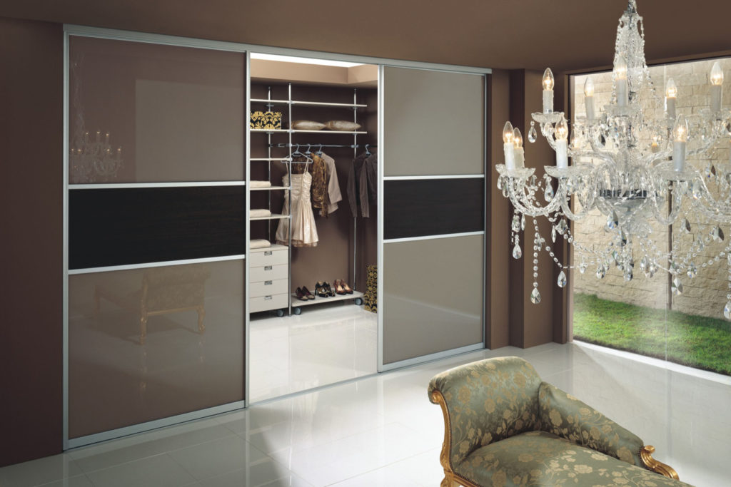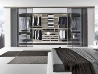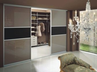 Une autre option populaire est un système qui comprend une porte de compartiment, ainsi qu'un remplissage complet du dressing. Les rails pour le mouvement de la porte sont fixés au sol et au plafond, tandis que les parties latérales, comme dans une armoire conventionnelle, sont absentes. Le remplissage d'un tel système est diversifié: peuvent être situés à l'intérieur des étagères, des tiroirs, des étagères, des compartiments à chaussures, etc.. Le "remplissage" dépend des préférences du client, ces systèmes sont fabriqués exclusivement selon des mesures individuelles.