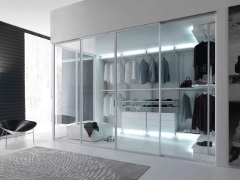 - Haute technologie. Un dressing dans ce style peut devenir un point culminant de toute la maison. Pour un style high-tech, il est important d'utiliser des structures modulaires avec des façades brillantes, des étagères ou des cloisons en verre, ainsi que des pièces en plastique et en métal.