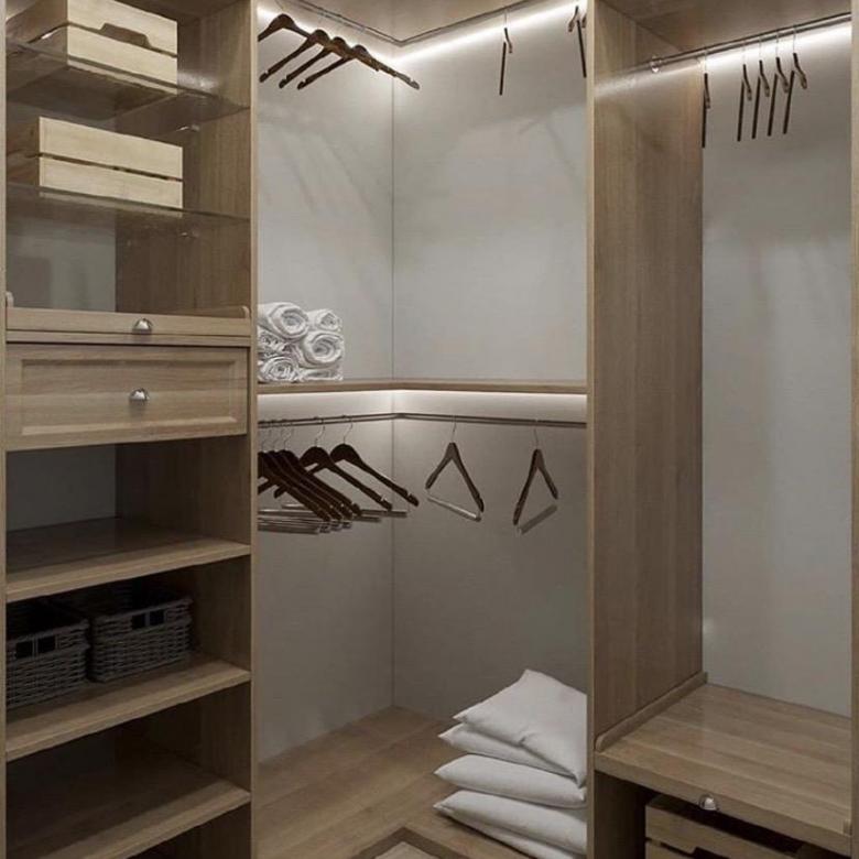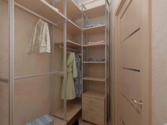 Il est très important de choisir des systèmes de rangement prêts à l'emploi pour les petits dressings. Ils sont disponibles dans une variété de matériaux : bois, métal et plastique, ainsi que leurs combinaisons.