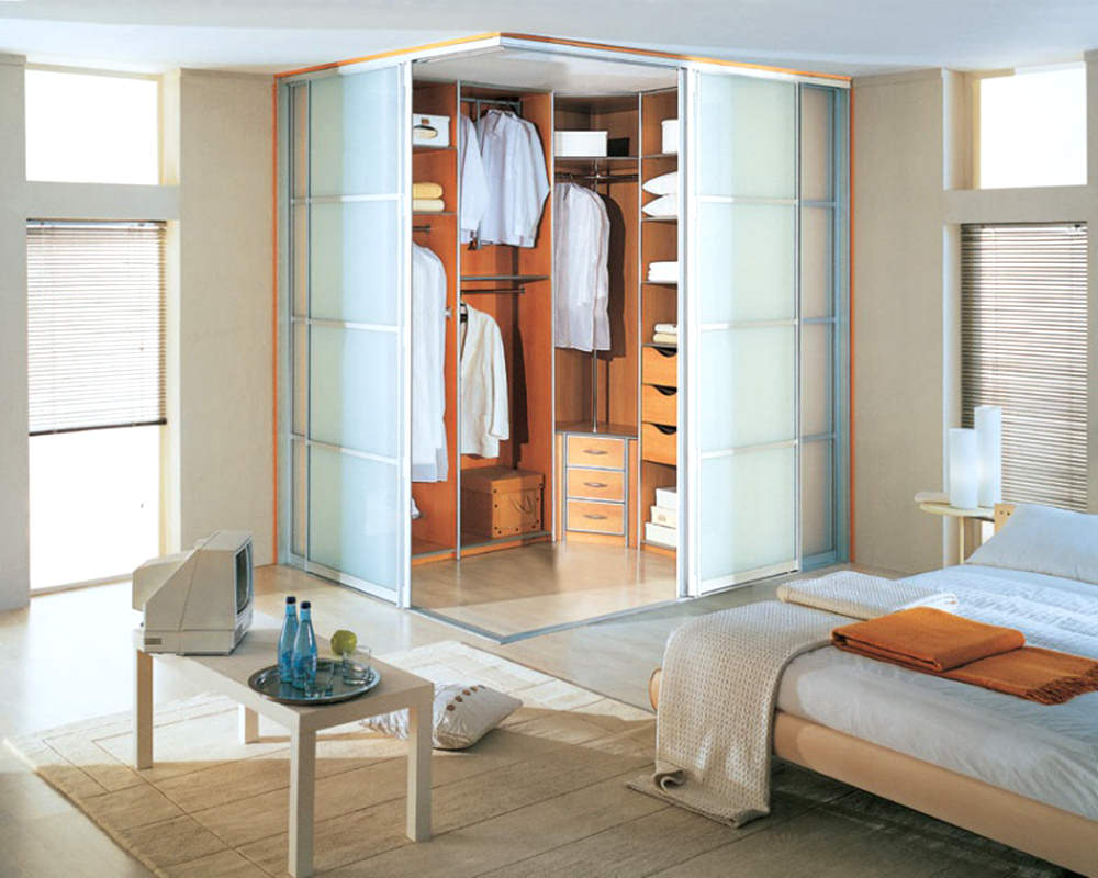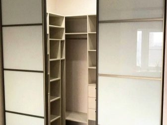 - Coin. Avec cette disposition, le système de rangement est monté dans le coin de la pièce. Diverses niches et impasses dans la maison sont parfaites pour son agencement.