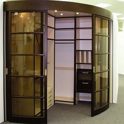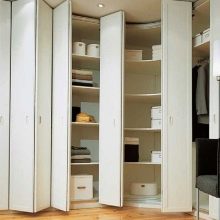 Cette conception compacte est très pratique, facile à utiliser et convient à n'importe quel espace. Si vous choisissez des portes accordéon avec des portes translucides, vous pourrez agrandir visuellement le dressing, ce qui est important pour les pièces de petite surface.