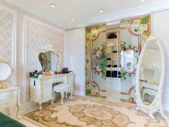 N'importe quelle porte d'un dressing peut devenir une décoration : même avec un décor supplémentaire ou au sens figuré sur commande. Tout dépend des préférences des propriétaires et de leurs capacités financières. Si vous collez sur des cloisons sèches avec de beaux textiles ou du papier design, vous obtiendrez également un design original.