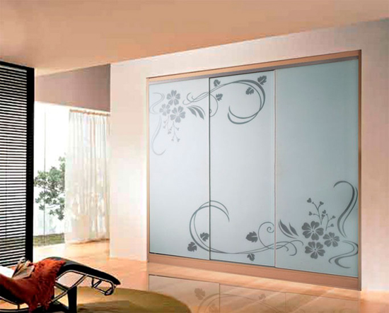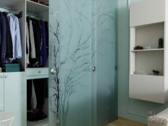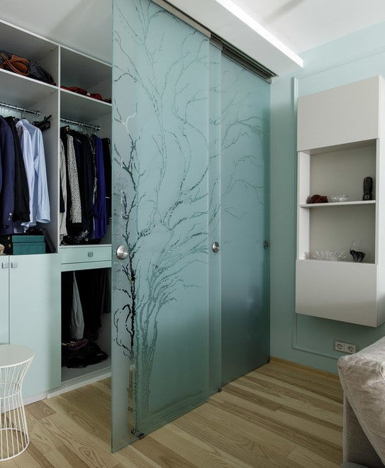 - Technique du vitrail. La gravure sur verre est élégante et moderne. Sans aucun doute, cette option ornera non seulement la partie dressing de la pièce, mais aussi tout l'espace, cependant, beaucoup refusent un tel charme en raison du coût élevé du vitrail.
