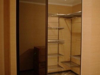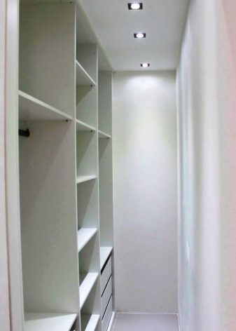 De plus, le dressing peut être joliment décoré de l'intérieur avec des éléments décoratifs dans le style de l'intérieur général de la pièce. Un grand miroir agrandira visuellement l'espace de la pièce. Les étagères et toutes sortes d'éléments internes sont soit en plaques de plâtre, soit achetés dans des magasins de meubles spécialisés.