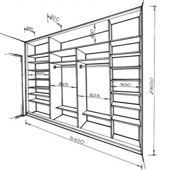 Nous analyserons étape par étape les instructions pour construire votre garde-robe. Tout d'abord, vous devrez faire un plan détaillé du vestiaire à la bonne échelle. Ensuite, nous faisons des marquages sur les murs selon le dessin. Ensuite, nous fixons le cadre de la structure à l'aide de chevilles. De plus, leur pas ne doit pas dépasser 30 centimètres. Et par le niveau, nous déterminons la pente correcte.