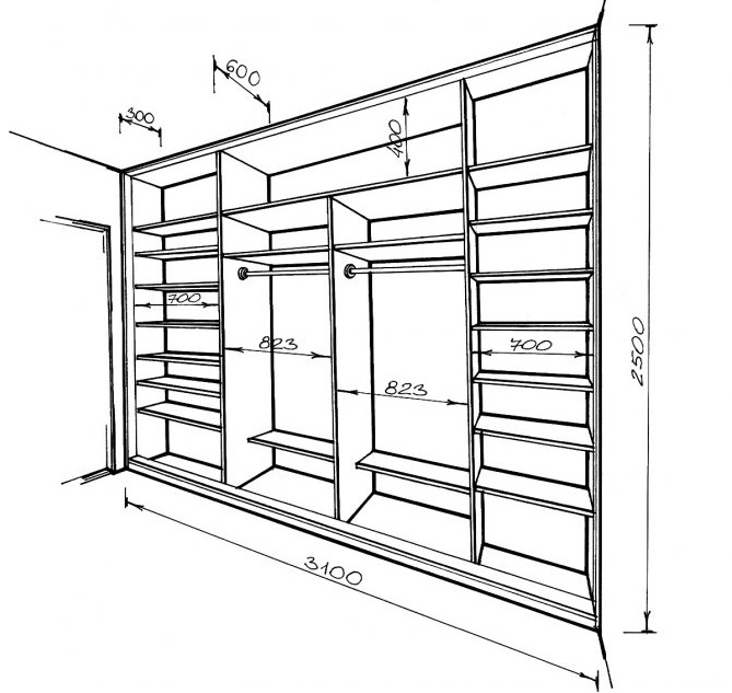 Avant de concevoir un dressing en plaques de plâtre, il est nécessaire de prendre en compte un certain nombre d'aspects, qui seront discutés ci-dessous. Tout d'abord, vous devez choisir un endroit, puis trouver ou créer votre propre dessin de la future structure. Le choix de la porte du dressing, qui doit être ergonomique et confortable, sera également un facteur important. Habituellement, une porte coulissante est utilisée dans ce cas.
